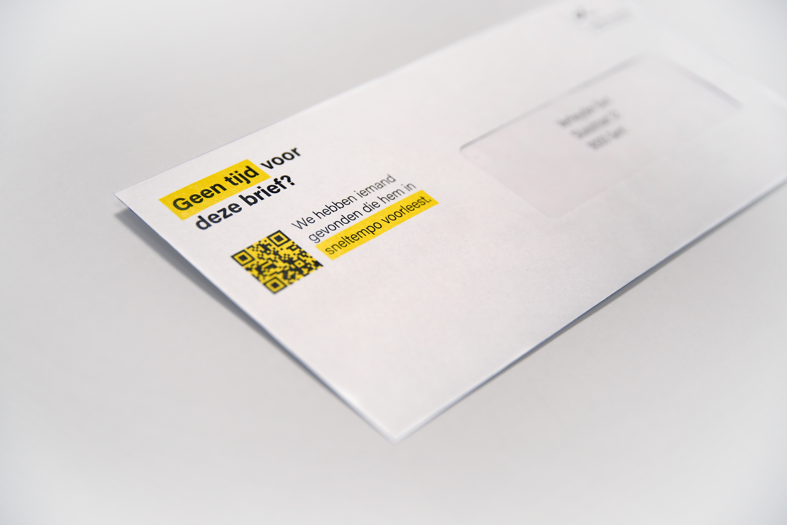 Professionals who run their own business are always short on time. That’s why Europabank sent them an exceptionally quick DM. It wasn’t even necessary to read the letter yourself. Because on the envelope there was a QR-code that led to a video of an auctioneer reading the text for you - at a dazzling speed of 197 words per minute.