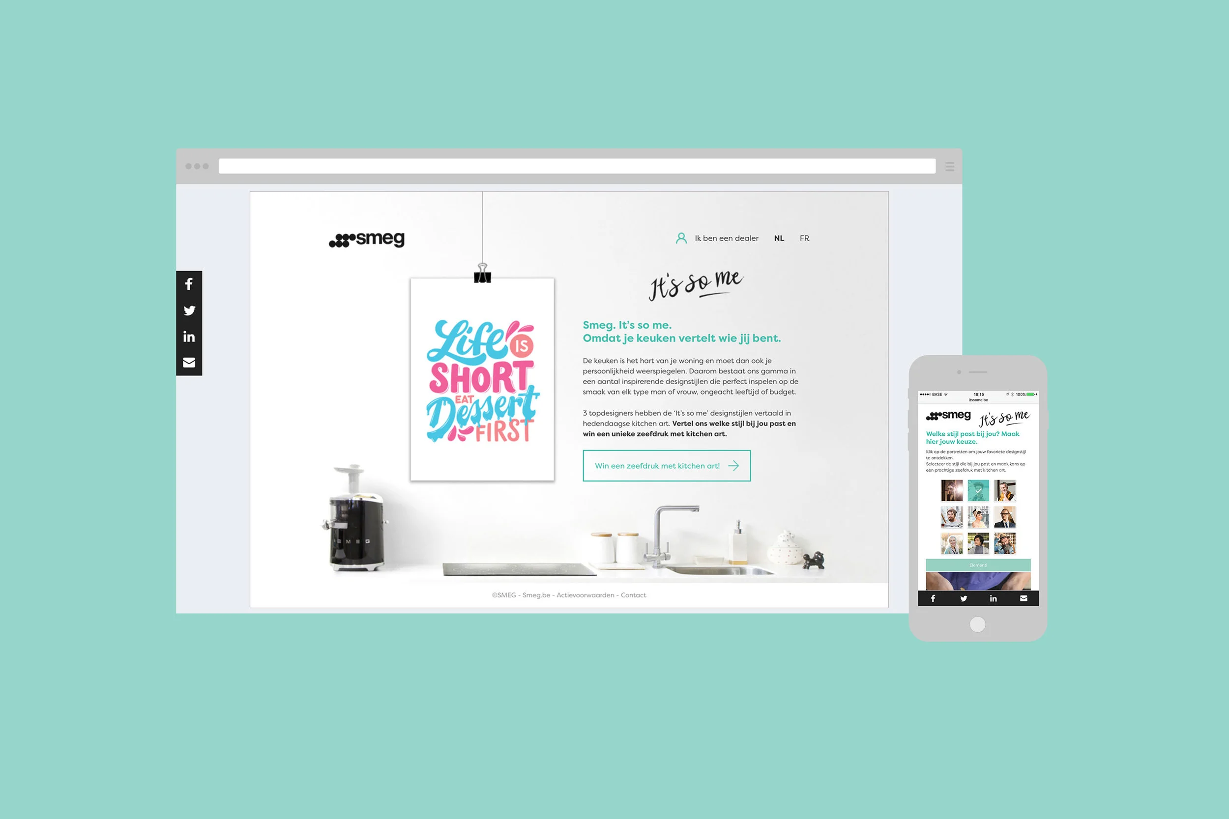Simultaneously a digital activation within the "It's so me" concept runs throughout the distribution network, allowing resellers to experience the Smeg promise themselves with "kitchen art". On www.itssome.be consumers can discover the wide variety of styles and win artful serigraphs.