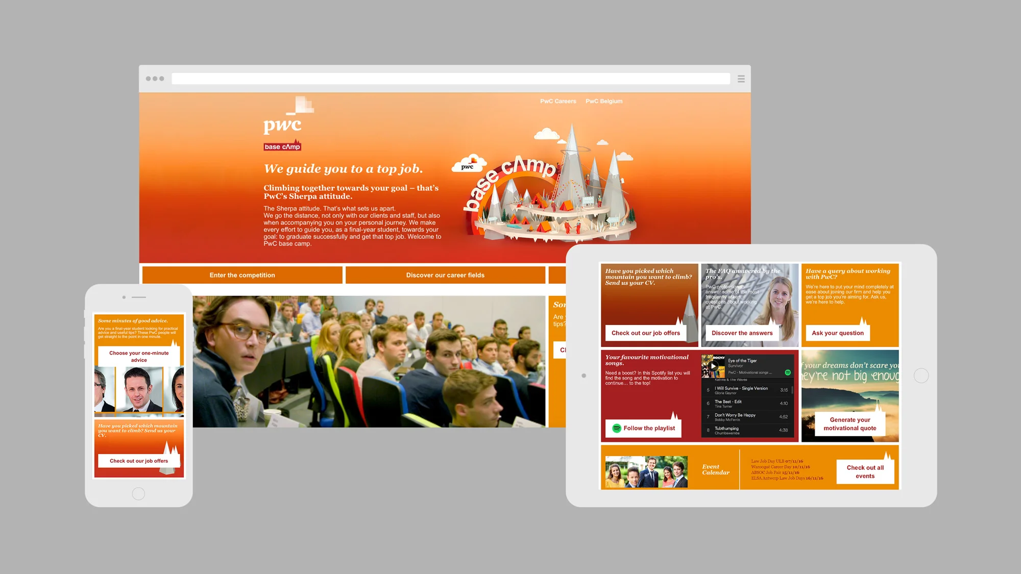So we built PwC base camp , a webplatform that offers final-year students informative, entertaining content to help them reach their goals, ranging from tips and tricks on how to write the best resume to a motivational quotes generator and playlist.